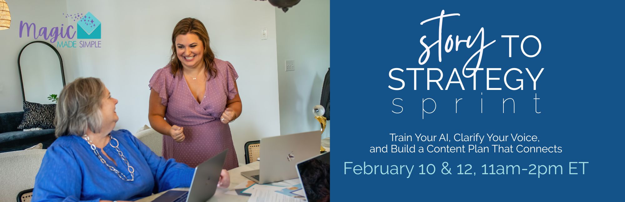 The Story to Strategy Sprint is a 2-day, hands-on, interactive workshop designed specifically for travel advisors who want to clarify their voice, train their AI tools, and build a content plan that actually works—without losing their personality in the process.