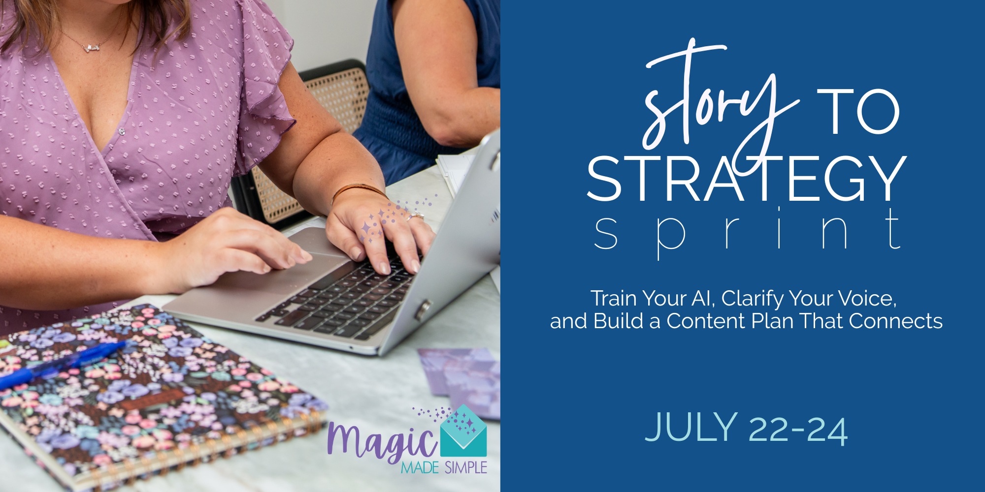 The Story to Strategy Sprint is a 3-day, hands-on, interactive workshop designed specifically for travel advisors who want to clarify their voice, train their AI tools, and build a content plan that actually works—without losing their personality in the process.